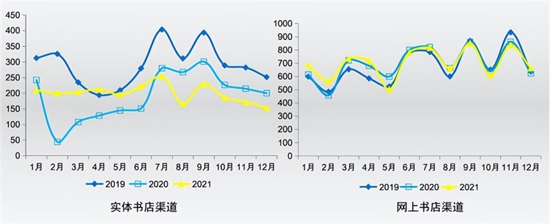 而实体书店也并非“任人宰割”。湖北新华书店电商负责人李照表示,从 2017 年开始,集团就开始着力布局线上业务,推出“线上新华”、“1+N”新媒体平台矩阵等,拓展线上销售渠道、增加线上销量。据北京开卷发布的《 2021 年中国图书零售市场报告》显示, 2021 年图书零售市场同比上升1.65%,码洋规模为986. 8 亿,网店渠道保持正向增长;实体店渠道 2021 年受主题出版图书带动,同比上升了4.09%,但是和 2019 年相比,仍然出现了31.09%的负增长。