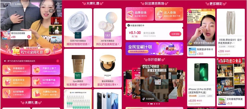 自进入全域兴趣电商阶段以来,由商城、搜索、达人橱窗、商家店铺等场景组成的抖音商城备受关注,抖音商城已成为很多品牌的新经营阵地。在抖音 921 好物节中,抖音商城提供丰富的玩法和资源扶持,再一次帮助品牌、商家打造爆款,实现流量沉淀与销量爆发。