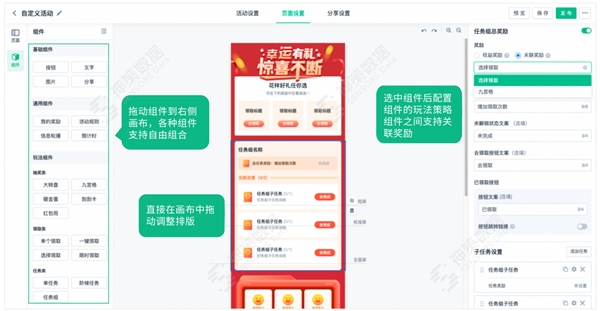 1、丰富且可灵活组合的活动组件,解锁营销互动 N 种创意