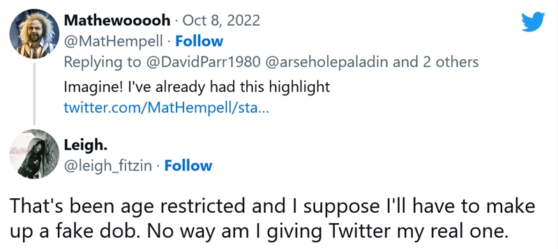 虽然Twitter禁止13岁以下的用户进入该平台,但许多人为了加入该平台而谎报自己的年龄。因此,要求用户自我验证他们的年龄对于内容过滤功能来说是一个低标准。英国通信监管机构Ofcom最近发布的一份报告表明,1/3的儿童在他们的社交媒体资料上谎报年龄以显示18岁及以上。